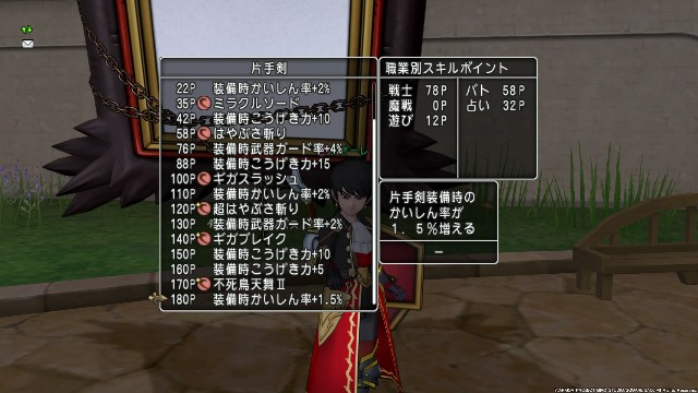 1度、全やりなおしの宝珠で5職ぐらい受け持ってる武器スキルに平均的に振り分けたはいいのだけど、うーん!ってなったから、使わない職を断捨離してしまった!(笑)