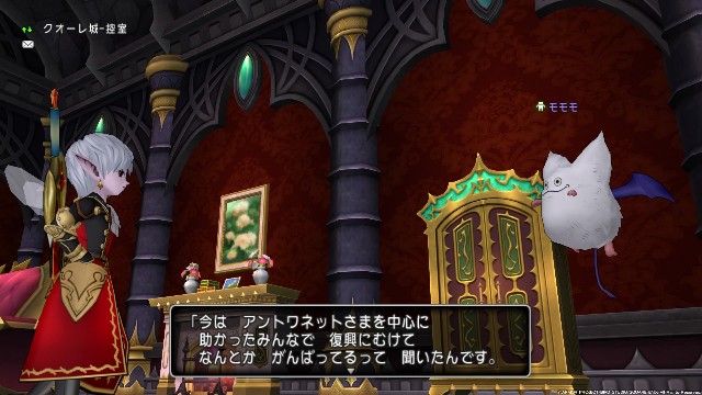 魔瘴が噴出したときにジャディンの園の魔物たちを宝箱に入れて守り、モモリオン王は死んでしまったそうです。そして、アントワネット妃が「主なき玉座があると 辛い思い出を忘れられない」と言い、モモリオン王の玉座を片付けることになります。